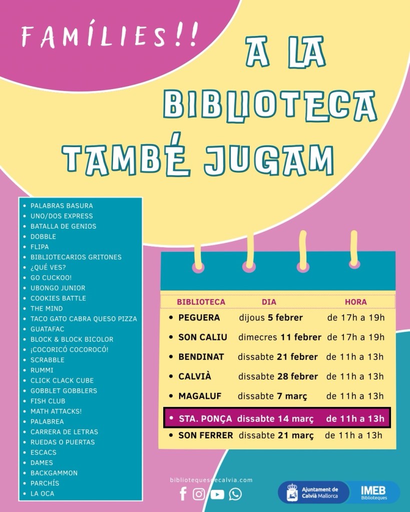 Biblioteca Santa Ponça-Galatzó. A la biblioteca també jugam. JOCS DE TAULA. Activitat familiar.