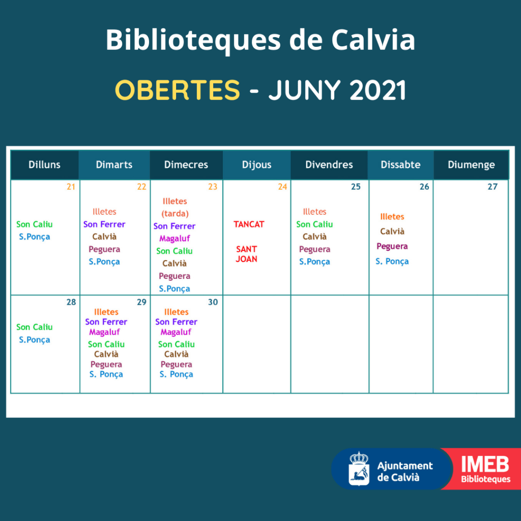 Biblioteques obertes juny 2021